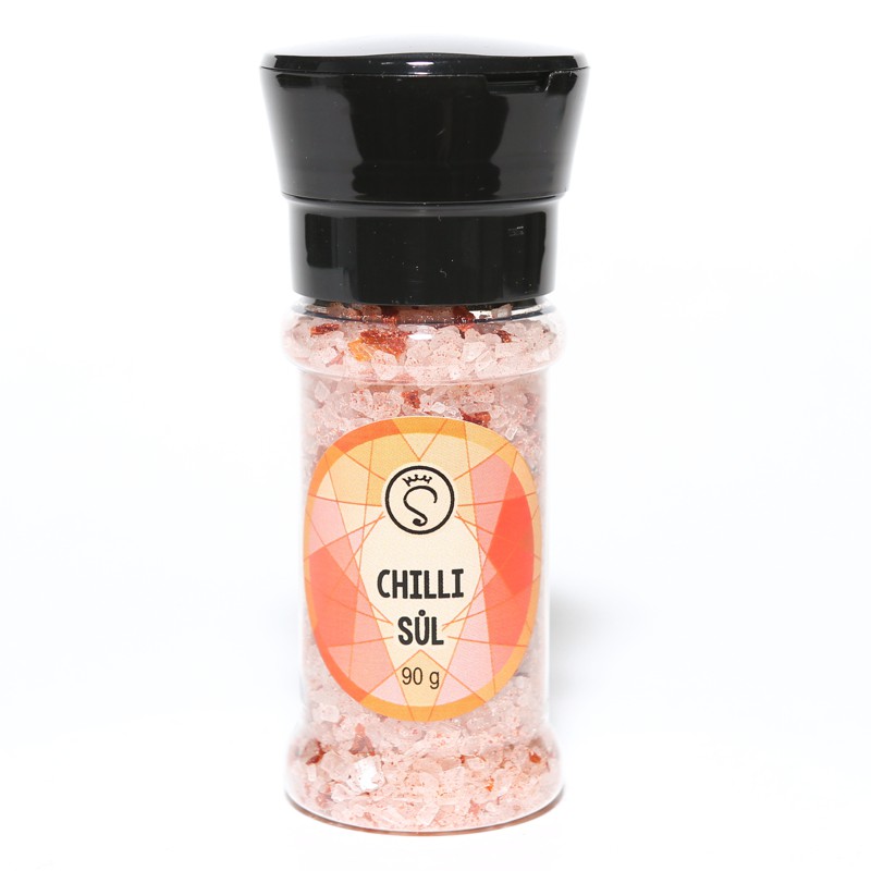 Chilli sůl je připravená do mlýnků na koření, protože při mletí se drtí velké kousky chilli a uvolňuje svoje aroma.