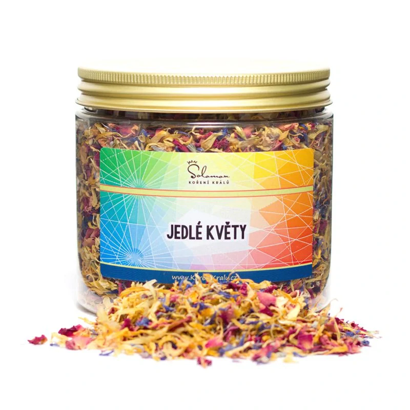 Směs sušených jedlých květů na ozdobu i dochucení dortů, dezertů nebo salátů a dresinků.